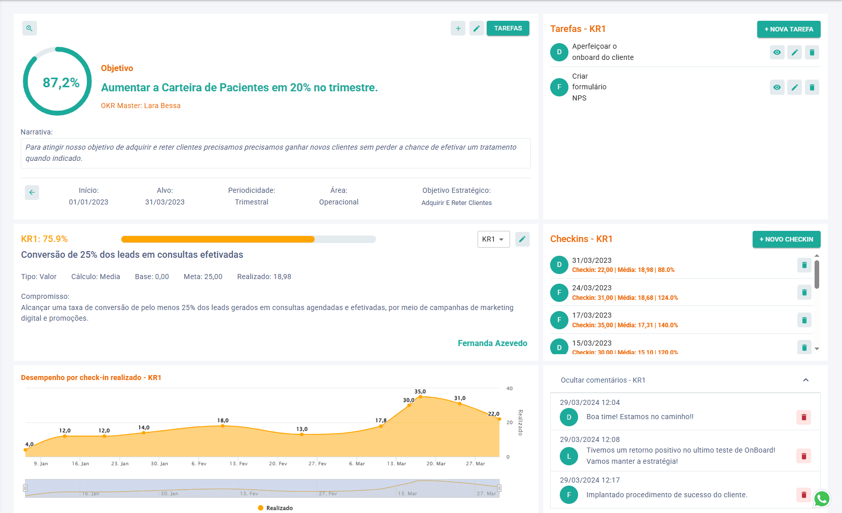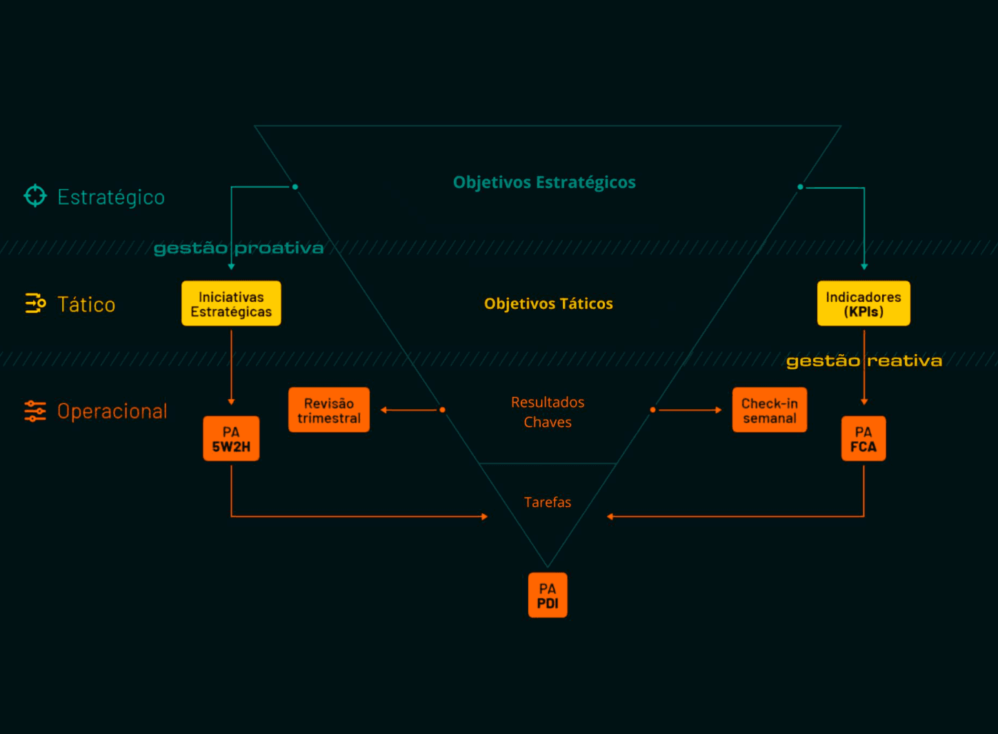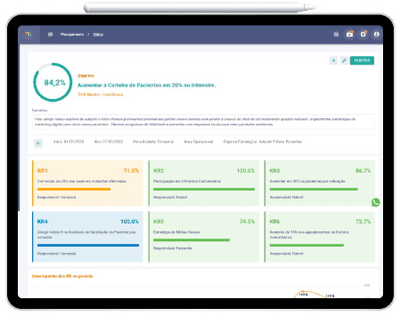 Ela permite monitorar indicadores estratégicos em tempo real, conectar essas informações à gestão de tarefas e responsabilidades, e transformar dados em decisões práticas que impulsionam o planejamento estratégico e a performance da sua empresa.